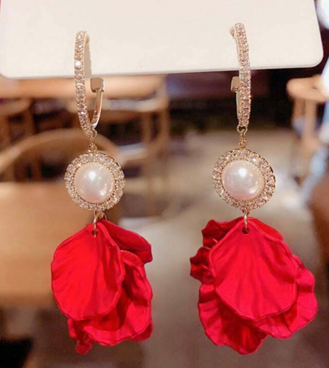 Elevate your look with these stunning Katelyn earrings. Featuring diamond studs on a drop down to an intricate pearl design, finished with a single red rose for a touch of elegance. Crafted from high-quality materials, this timeless design looks great on all occasions.
