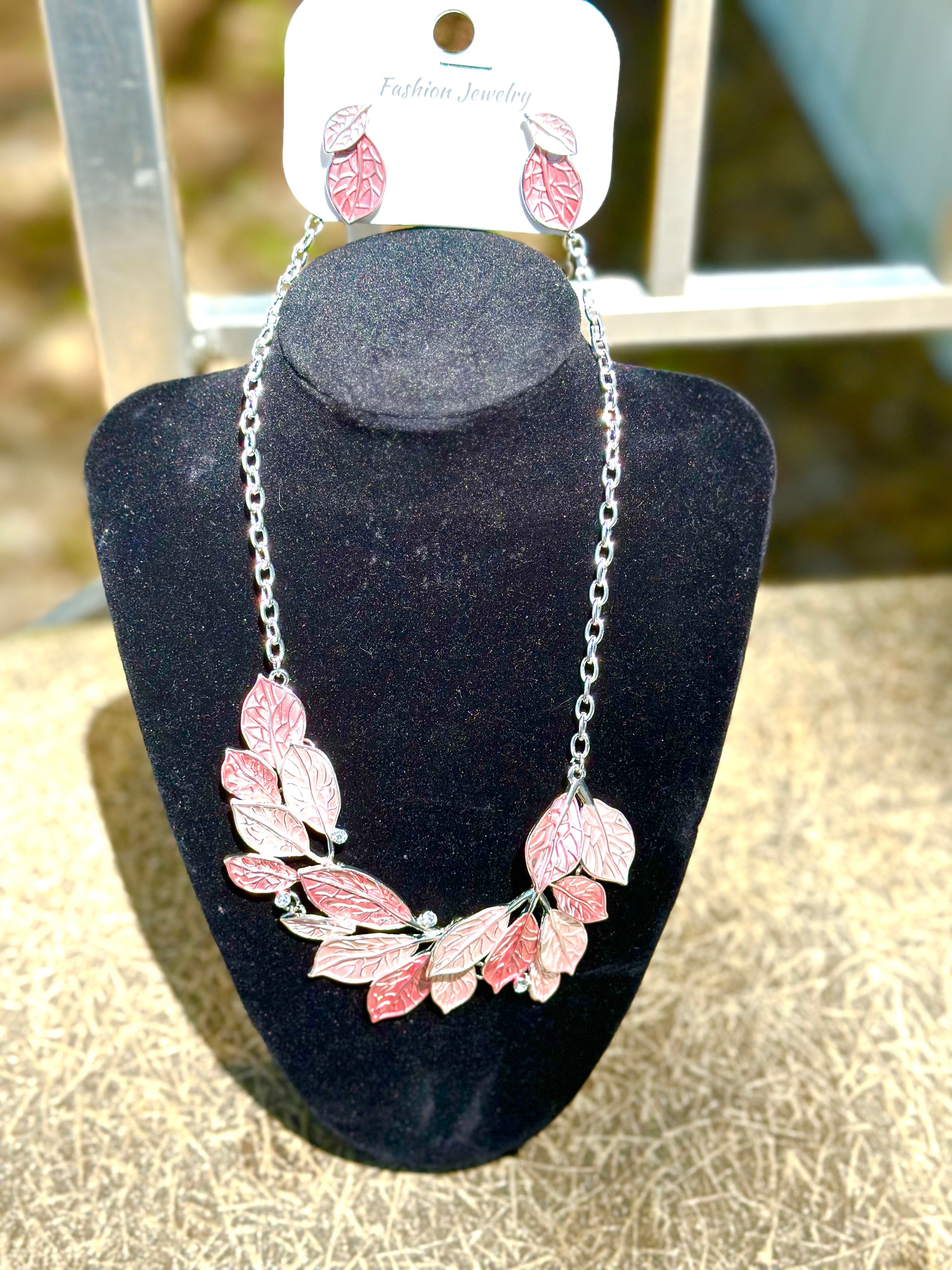 Leaf necklace and earrings set