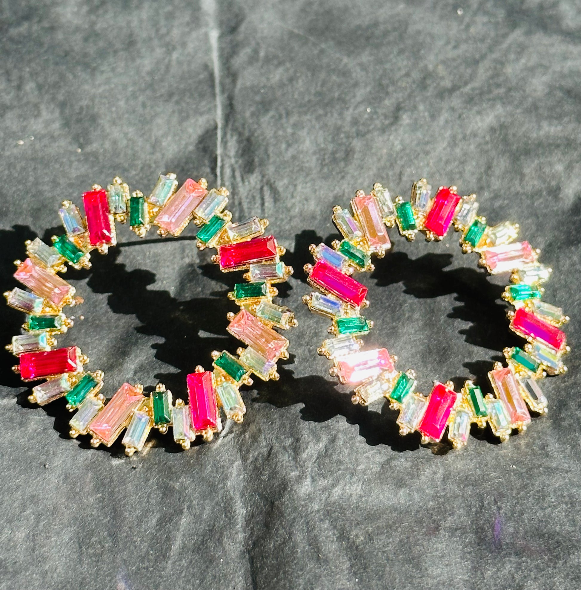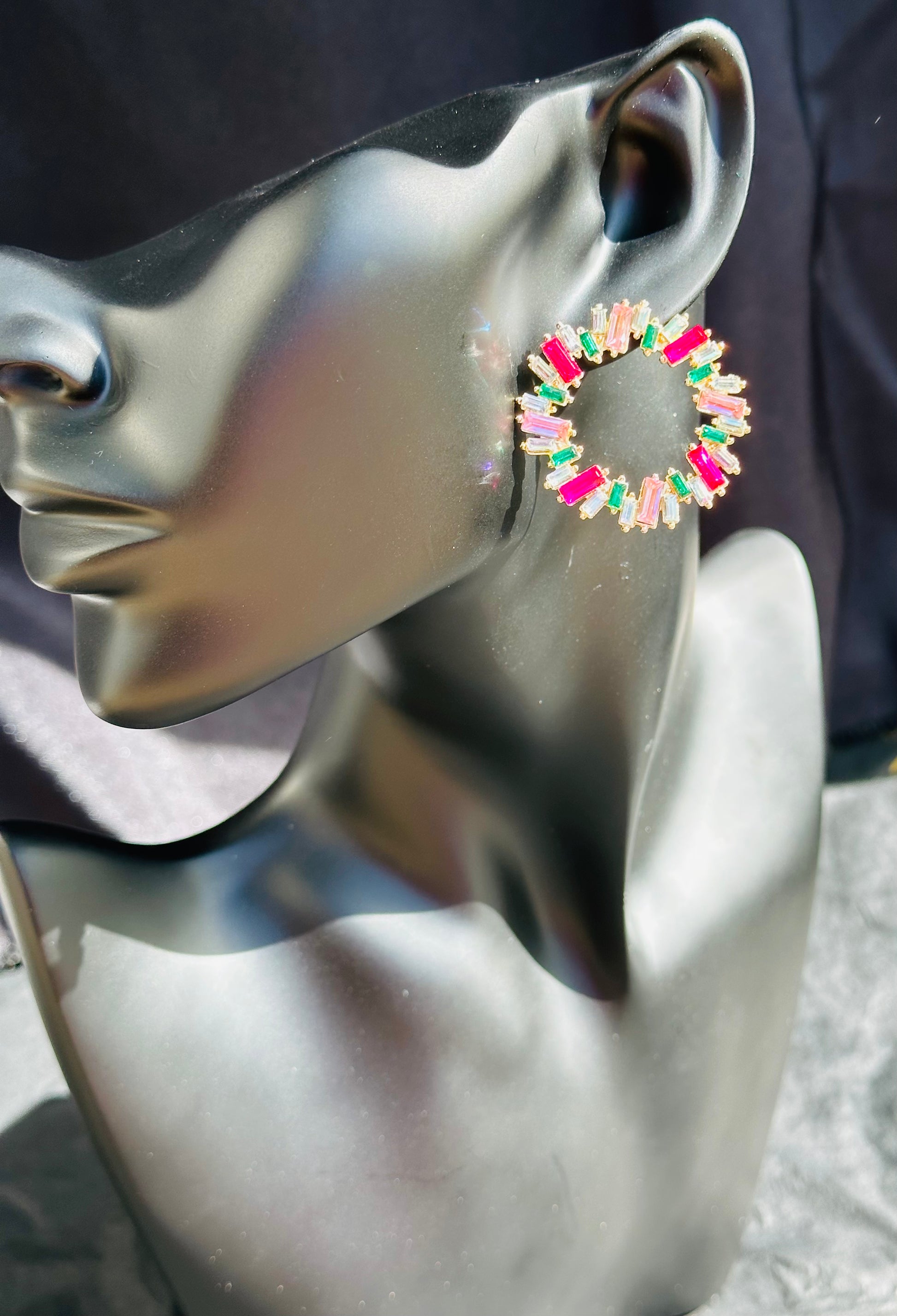 Pink and green circular earring