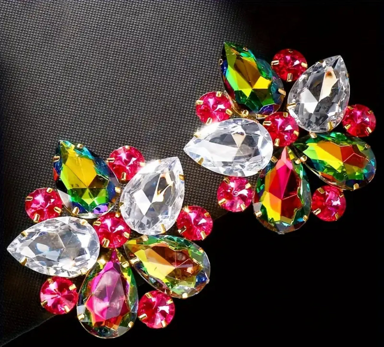 Get ready to dazzle and turn heads with our Stargazer earrings! These stunning earrings feature a big, flower-shaped design with sparkling pink and green diamonds. Add a touch of elegance and glamour to any outfit with these statement earrings. Perfect for special occasions or everyday wear.