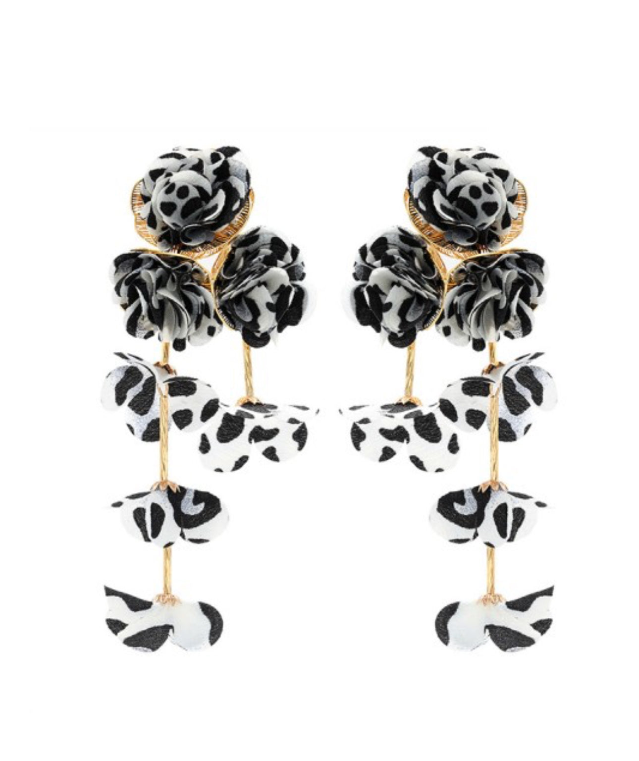 The Wild Bloom Drops blend bold leopard-print petals with soft cascading florals for a fierce yet feminine statement. Lightweight, dramatic, and full of attitude the perfect glam twist on a wild classic.